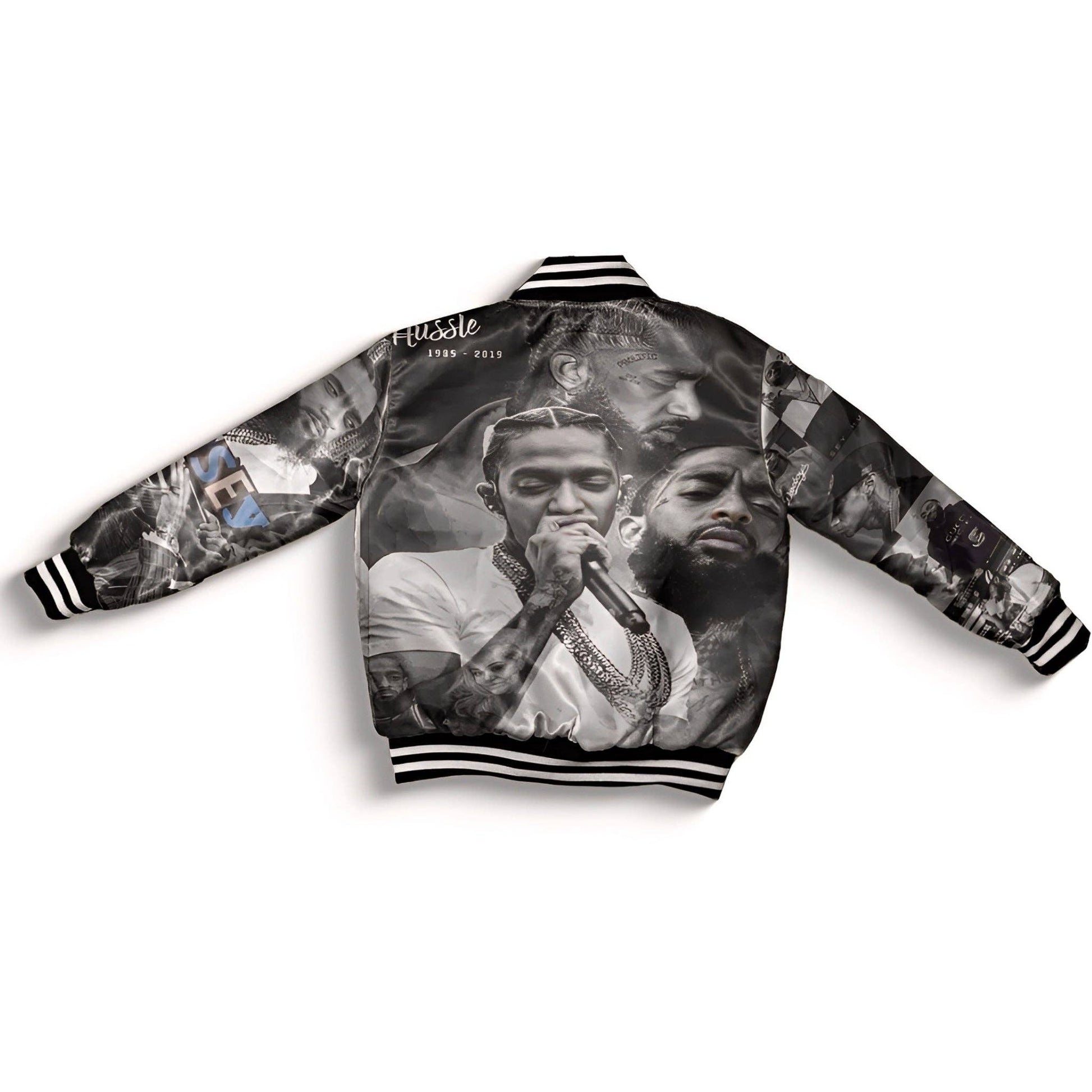 As an iconic figure in the music industry and entrepreneur from South Central Los Angeles, Nipsey Hussle's meteoric rise is celebrated in this intricate and detailed bomber jacket. A must-have for all collectors of exclusive Nipsey Hussle themed apparel, this collage-style jacket is a perfect addition to your Nipsey Hussle apparel collection.