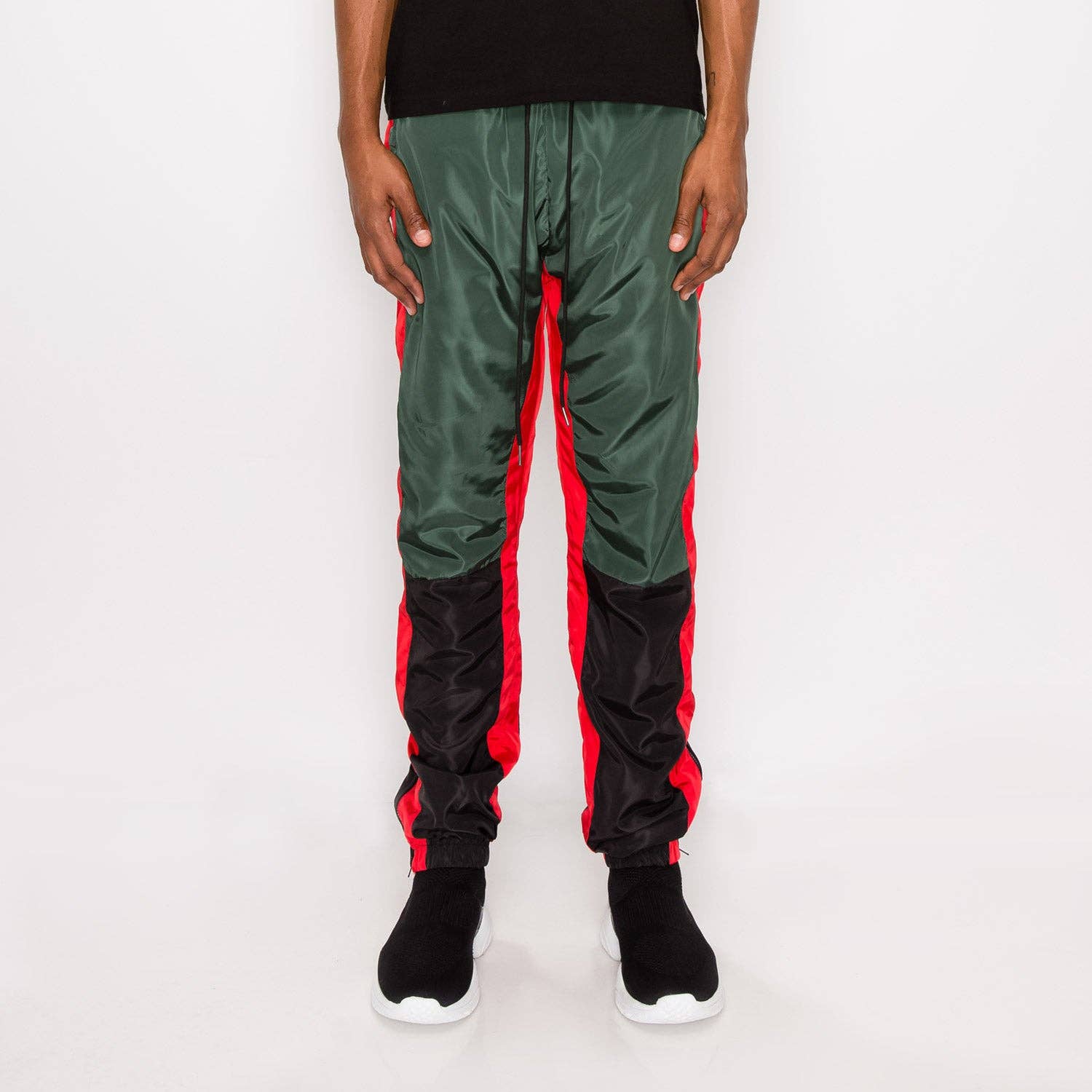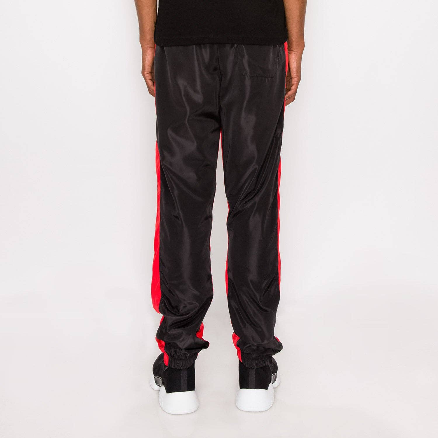 Features Color blocking Side split stripe Elastic waist Drawstrings Waist pockets Rear patch pocket Elastic ankle cuffs Loose fit through the thigh Details 100% Polyester